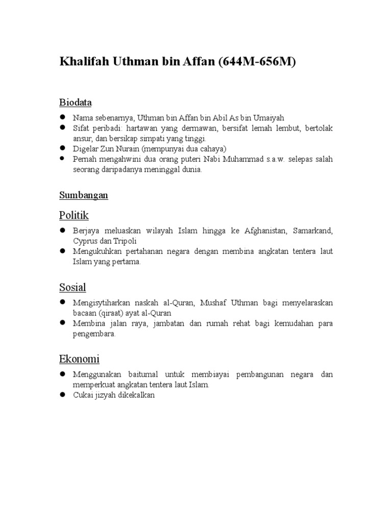 28 Khalifa Uthman Bin Affan Ø¹Ø«Ù Ø§Ù Ø¨Ù Ø¹ÙØ§Ù Osman Ra 47 Bh 35 Ah 576 656 Ce Ideas Uthman Ibn Affan Islam Islamic Quotes from i.pinimg.com Beliau dikenal sebagai salah satu sahabat nabi dan juga khalifah ketiga dalam khulafaur rasyidin setelah utsman bin affan juga dikenal sebagai pedagang kaya raya dan ekonom yang handal namun sangat dermawan. Selama itu prestasi yang dicapai utsman bin affan : Dia berasal dari keluarga kaya raya. Semakin lebarlah wilayah daulah islam dan bertambah luaslah daulah islam ini, serta sampailah misi rasulullah saw ke timur dan barat bumi ini.7. 'utsman bin affan adalah khalifah ketiga yang berkuasa pada tahun 644 sampai 656 dan merupakan khulafaur rasyidin dengan masa kekuasaan terlama. Kebudayaan di masa khalifah utsman bin affan. Banyak bantuan ekonomi yang diberikannya kepada umat islam di awal dakwah islam. Khalifah usman bin affan menjabat kholifah setelah wafatnya sahabat umar ra bulan muharrom tahun 24 h ketika itu sahabat umar ra berusia 68 menurut hitungan masehi atau 70 menurut hitungan hijriyyah9.