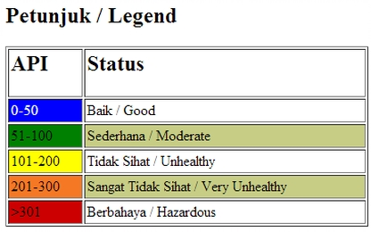 Semakan bacaan ipu terkini online indeks pencemaran udara (jerebu) jabatan alam sekitar malaysia (jas) telah menyediakan aplikasi untuk menyemak nilai bacaan ipu mengikut kawasan di setiap negeri di malaysia. Sila klik pautan ini untuk bacaan seterusnya. Berdasarkan sejarah, negeri sarawak pernah sehingga diisytiharkan darurat oleh kerajaan malaysia pada era pimpinan tun mahathir pada tahun 1997. For more information and source, see on this link : For more information and source, see on this link : A specific colour shape is assigned to each air pollutant index (api) category to make it easier for the people with colour vision deficiency to understand the status of air quality. Semua sekolah yang ditutup di sembilan daerah di sarawak ekoran jerebu semalam dibuka semula seperti biasa hari ini. Balik pulau (184), minden (159) seberang jaya (134) serta seberang perai (119) di pulau pinang selain empat kawasan di perak melibatkan taiping (121. Dalam pada itu, dua lokasi iaitu di tangkak, johor dan melaka yang mencatatkan bacaan ipu sangat tidak sihat semalam dilihat kembali pulih dan mencatatkan bacaan kurang daripada 200 hari ini. Bacaan ipu di tasek menunjukkan aliran peningkatan bermula pada jam 4 pagi awal hari ini iaitu bacaan ipu 102, meningkat kepada bacaan ipu 103 sehingga jam 9 pagi dan seterusnya bacaan ipu 105 pada jam 1 petang. Saya ahmad mazhar bin mansor, penyampai ipu anda pada hari ini. Kualiti udara di seluruh negara bertambah baik tengah hari ini apabila bacaan indeks pencemaran udara (ipu) terus menunjukkan penurunan dengan hanya 14 kawasan merekodkan bacaan ipu tidak sihat berbanding 25 kawasan pada 7 pagi tadi. Menurut laman web jabatan alam sekitar, bacaan ipu di shah alam adalah 127.