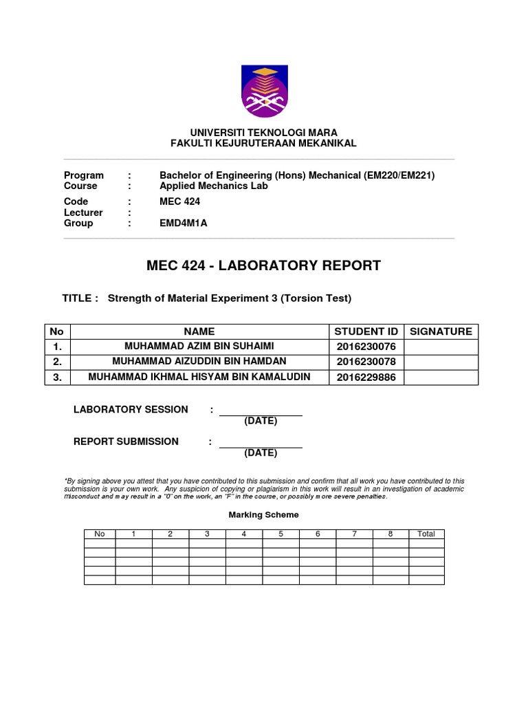 Tensile Test Lab Report Uitm : 180536084 Tensile Test Uitm Mechanics Of Materials Lab Mec424 Bending In Beam Mr Suhaime Suparman Group Emd4m12a Mohamad Fikri Bin Mohd Shahidan Course Hero : Tensile test lab report uitm.